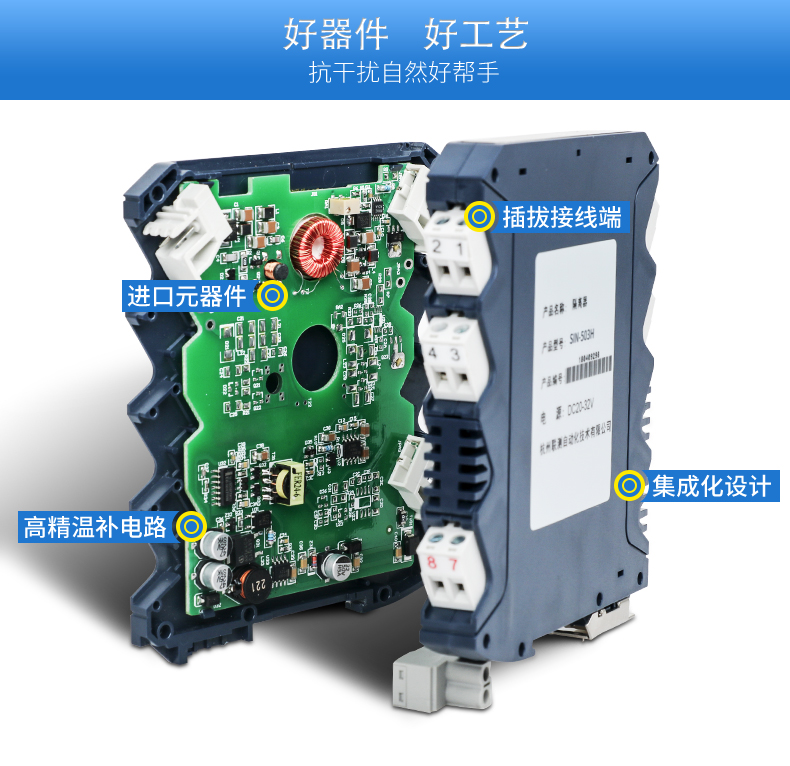 將PT100等熱電阻跟熱電偶信號轉(zhuǎn)換成各種電流、電壓等標準模擬量信號,可以與PC機、PLC、DCS等實現(xiàn)工控監(jiān)測連接??垢蓴_能力強,遠傳不受其他設(shè)備影響。輸入、輸出選擇范圍寬,準確度高。電源可選擇,導軌安裝便于檢測與安裝。廣泛應(yīng)用于各種對溫度集中測量的監(jiān)控系統(tǒng)中。