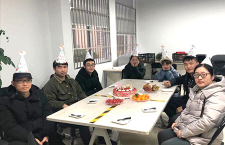 蕭山生產基地,壽星們也是歡聲笑語不斷,分享著蛋糕、水果,玩著小游戲,全程緊張且驚喜。公司同事們也紛紛獻上了自己的生日祝福。