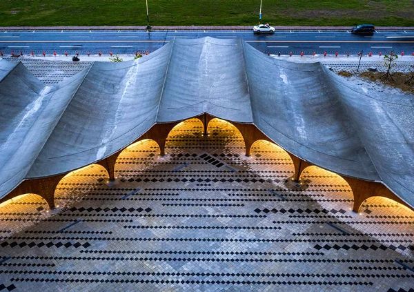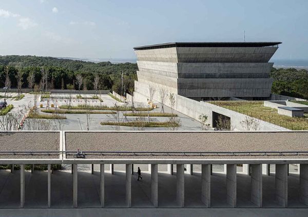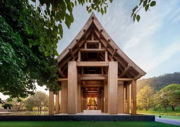 BACC的“無限大地”分為“地面交流”和“地面感受”兩部分,深入探討了當代建筑與大地之間的聯系。在第一部分“地面交流”中,建筑師采用現代建筑技術來構筑獨特的場地景觀,強調地面的特征。例如,49建筑師有限公司的Velaa Sindhorn Village Langsuan(2019年)和Singha D'luck電影劇場(2017年)等高架建筑為公眾提供了交流空間,并受到光線和季風等自然元素的影響。Behet Bondzio Lin Architekten的永恒之山骨灰龕(2022年)和屋頂之屋(2016年)回應了臺灣的熱帶氣候,創造出傳達神圣感的設計。