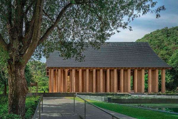 部分“地面感受”側重于將環境作為設計解決方案,將材料、工藝和構造融為一體,創造出多維空間感。例如,Arsomsilp社區與環境建筑師事務所設計的Puey Ungphakorn百年紀念大廳(2019年)和Tha Chalom天空之舟圖書館(2022年),它們形成了和諧的微生態系統,激活了原有的環境界面。Ambi工作室的湖山水庫考古展覽館(2023年)和毓秀美術館(2015年)順應地形,通過精心打造的空間為游客提供獨特的觀賞體驗。