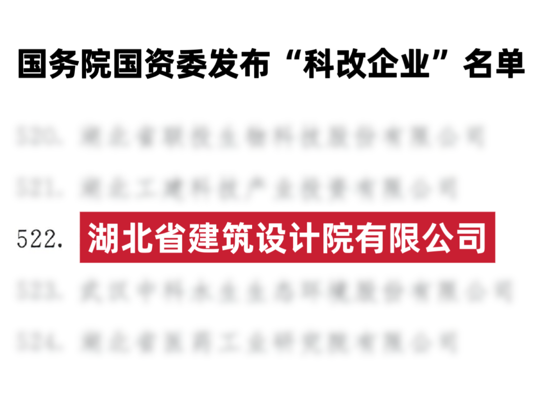 日前,國務(wù)院國資委發(fā)布最新“科改企業(yè)” 名單,湖北省建筑設(shè)計院有限公司入選。