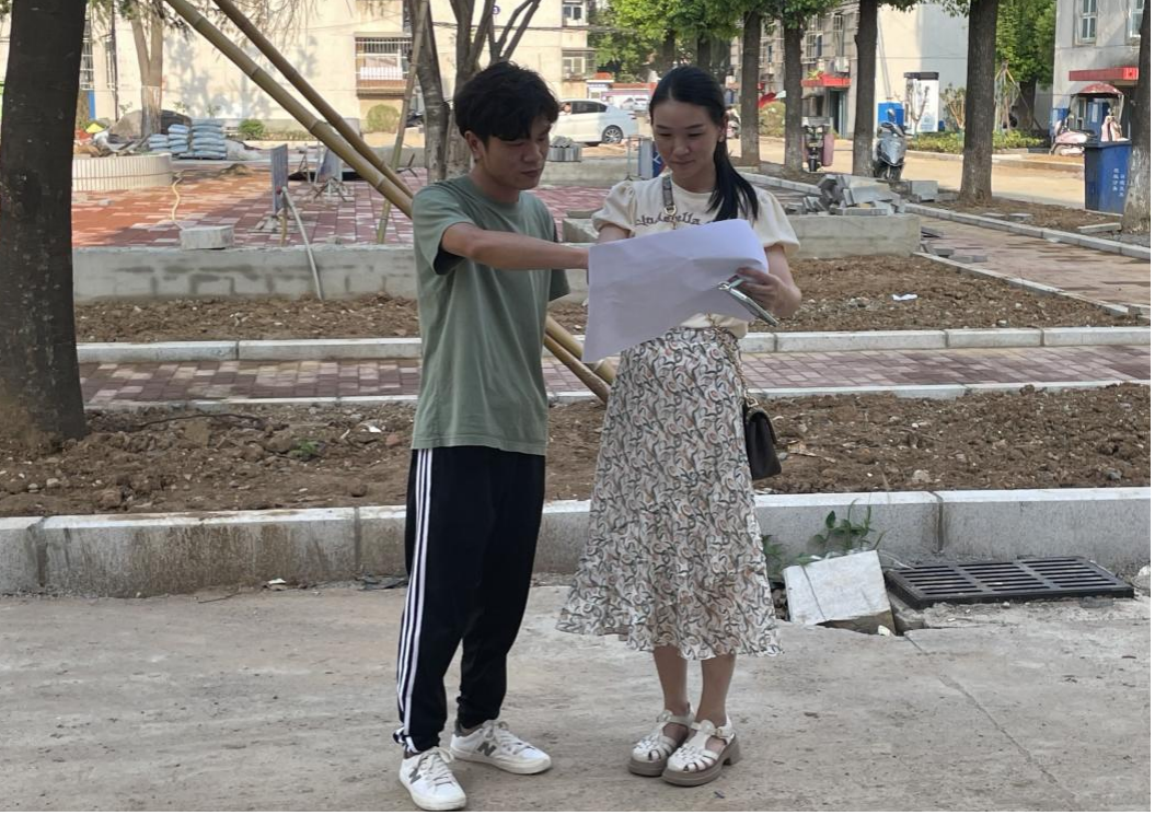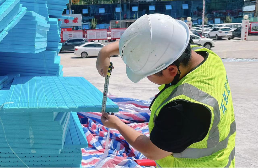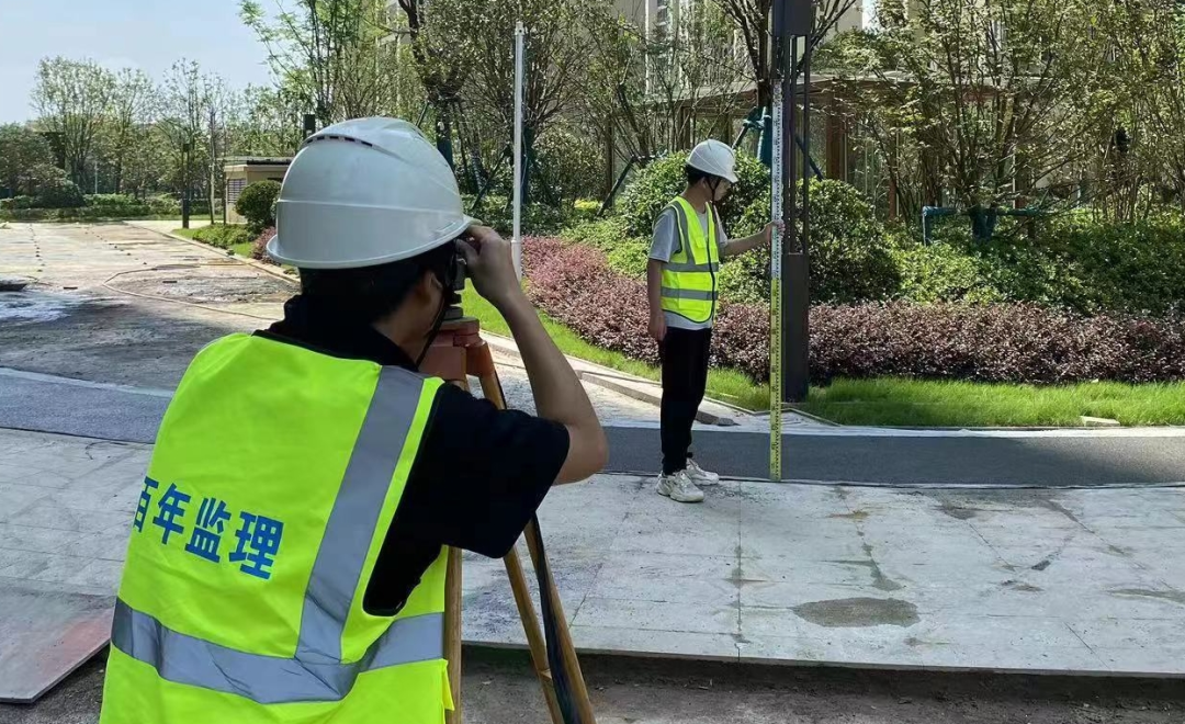 現場監理人員在高溫天氣下正在對地面石材鋪裝平整度進行復核測量,確認道路平整,達到驗收標準,以保障工程進度順利,按時進行交付。這只是監理人員日常工作的一個縮影。每一個項目現場,是戰場、是陣地,只有付出辛勤的汗水,才能打造優質安全的工程。