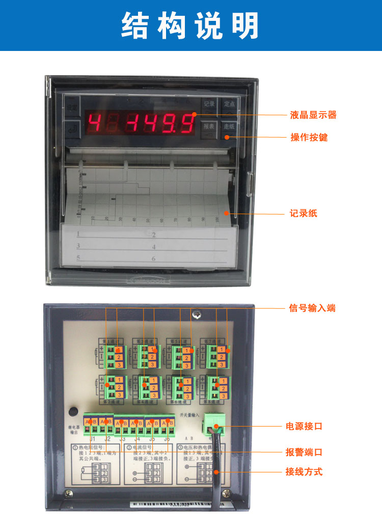 有紙記錄儀在測量,運算,顯示,打印等功能上有了很大的提高可以很方便的實現網絡的連接。有紙記錄儀采集的數據,常用的有:溫度、壓力、流量、液位、電壓、電流、濕度、頻率、振動、轉速等。
