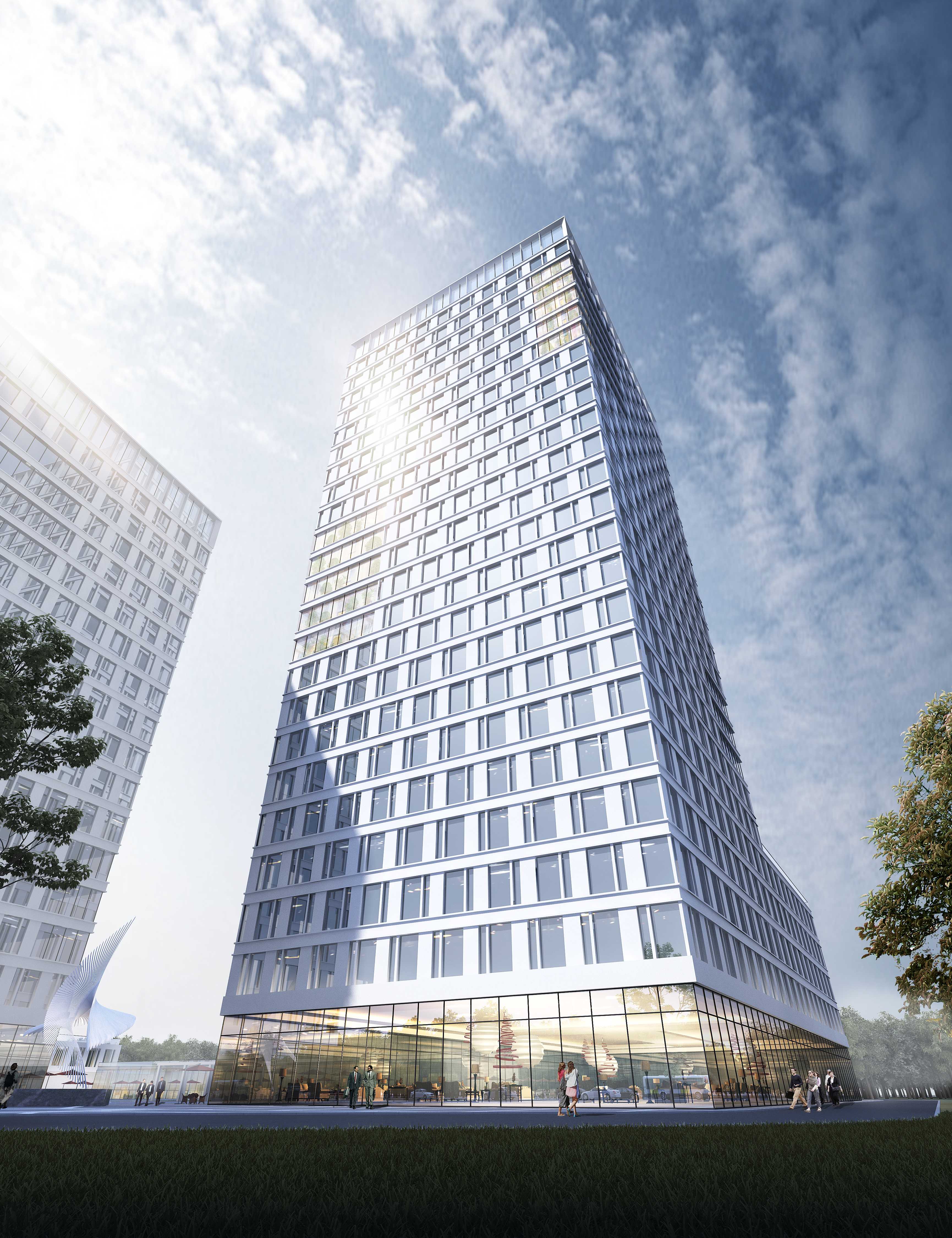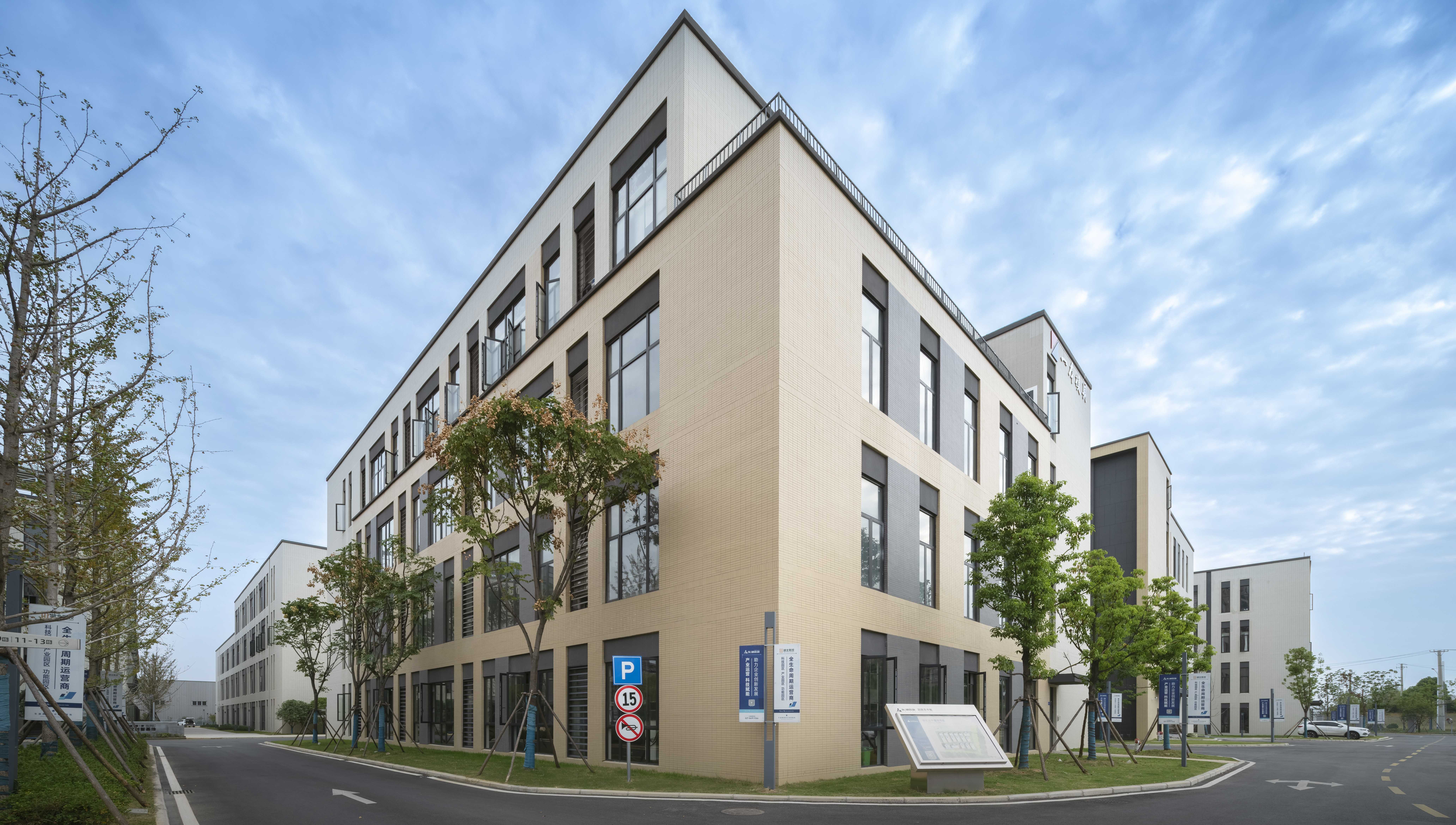 本工程為辦公型產業園區項目,基地東側暫未空地,南側為高新五路,西側為產業園區,北側為公園綠地。項目凈用地面積約為27025㎡,總建筑面積約為133913㎡,地塊內設有三棟辦公塔樓,構建豐富城市天際線。