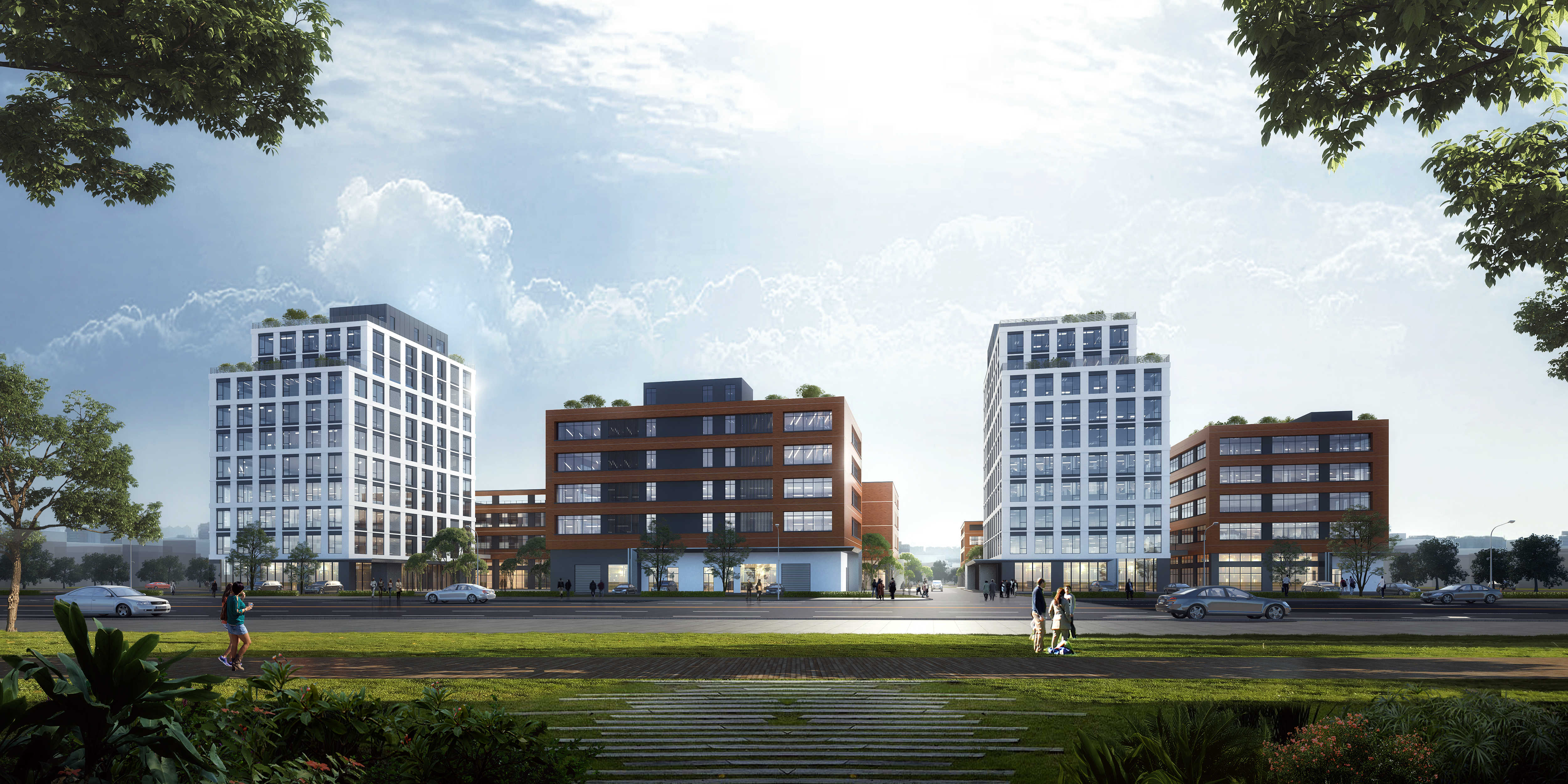 本項目位于鄂州市西部,西距武漢市中心城區 20 公里,項目凈用地面積為48916.92㎡,總建筑面積為73464.04㎡。項目采用兩軸一心多組團,在用地內部打造東西向人文軸線以及南北向景觀軸線,中央形成中心大景觀。在區域 重點位置設置高等級的形象建筑,其余為高低錯落的建筑群,打造多層次的建筑空間,在未來三路形象面上形成豐富變化的天際線 。