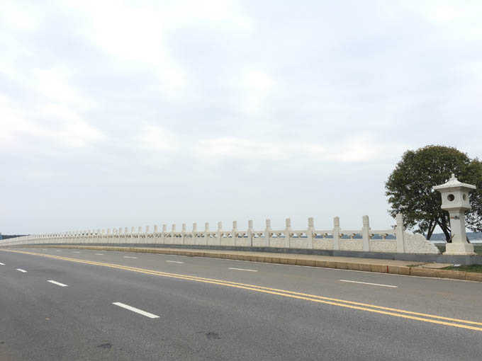 梓山湖大橋橫跨梓山湖,是賀勝新城道路交通網絡的重要組成部分,也是一個集交通、景觀、泄洪為一體的綜合項目。橋梁上部結構為13孔連拱橋,橋墩為板式墩接承臺;橋梁兩側采用路堤與橋梁相接;橋梁長163.36米,寬21米。