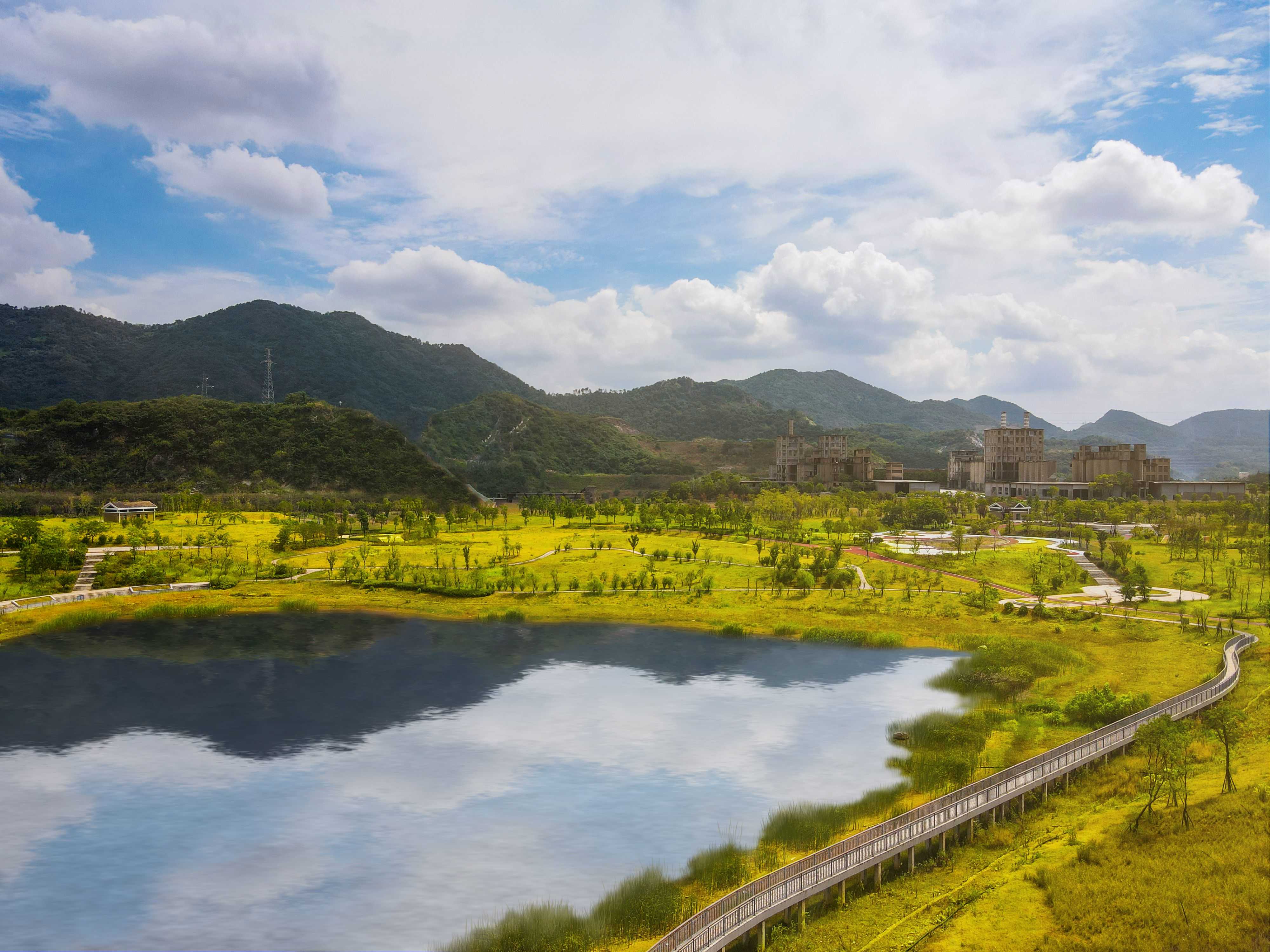 本項目設計面積1545.74畝,工程院景觀事業部以鑄綠,將風化巖土邊坡進行護綠處理,將遺留礦坑改造為景觀水體,融入全民健身功能,策劃特色主題酒店,創造出一個顯山、露水、透綠的礦坑遺址公園。
