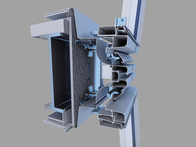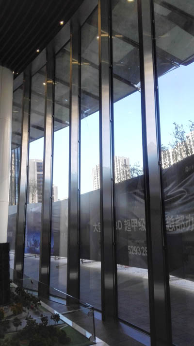 保利國際廣場(chǎng)塔樓1選用的是先進(jìn)的雙層呼吸式幕墻,分內(nèi)層幕墻、外層幕墻兩大部分。內(nèi)層幕墻二層以上及我司均設(shè)計(jì)了多屏多腔高性能柔性可拆卸豎明橫隱框單元幕墻系統(tǒng),首層大堂主要采用單向單拉索大跨度玻璃幕墻。外層幕墻由網(wǎng)格狀的鋁單板包柱分格成不同的菱形分塊,每個(gè)分塊又分成兩個(gè)三角形大板面。兩個(gè)三角形板面相交線為進(jìn)出風(fēng)口。網(wǎng)格內(nèi)幕墻采用大跨度多屏多腔高性能柔性可拆卸豎明橫隱框單元幕墻系統(tǒng)。跨度大于4.2米板塊采用鋼鋁結(jié)合豎向公母型材。整個(gè)主樓立面運(yùn)用了不同的折線鋁板包柱、三角形體塊搭配,突顯出建筑立面生動(dòng)豐富、剛毅挺拔以及強(qiáng)烈的現(xiàn)代感。外層幕墻的面板主要采用鋁單板與高透玻璃,每二層設(shè)置進(jìn)出風(fēng)口。