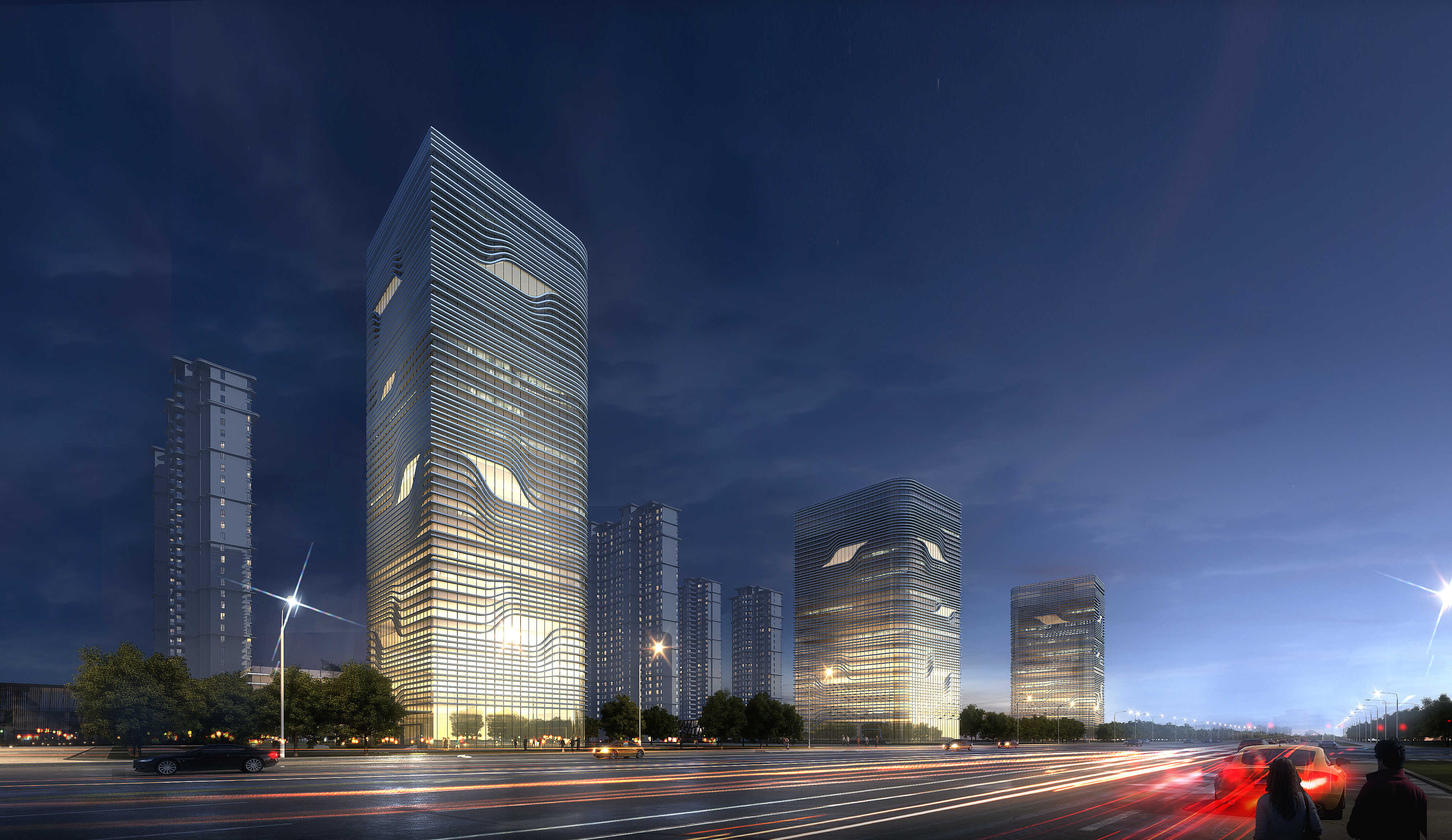 本建筑設(shè)計(jì)造型簡(jiǎn)潔大方,布局錯(cuò)落有致,建筑風(fēng)格協(xié)調(diào)統(tǒng)一而不失變化。我院充分地把握了本建筑的特點(diǎn),利用幕墻的先進(jìn)技術(shù)、材料特點(diǎn),對(duì)每一個(gè)細(xì)微部位所代表的建筑符號(hào)一一進(jìn)行體現(xiàn),使本工程無論是視覺效果還是使用功能、結(jié)構(gòu)安全性、幕墻物理性能等都達(dá)到非常高的境界,傾力于將它設(shè)計(jì)打造成為高品質(zhì)的幕墻精品力作及地標(biāo)性建筑。