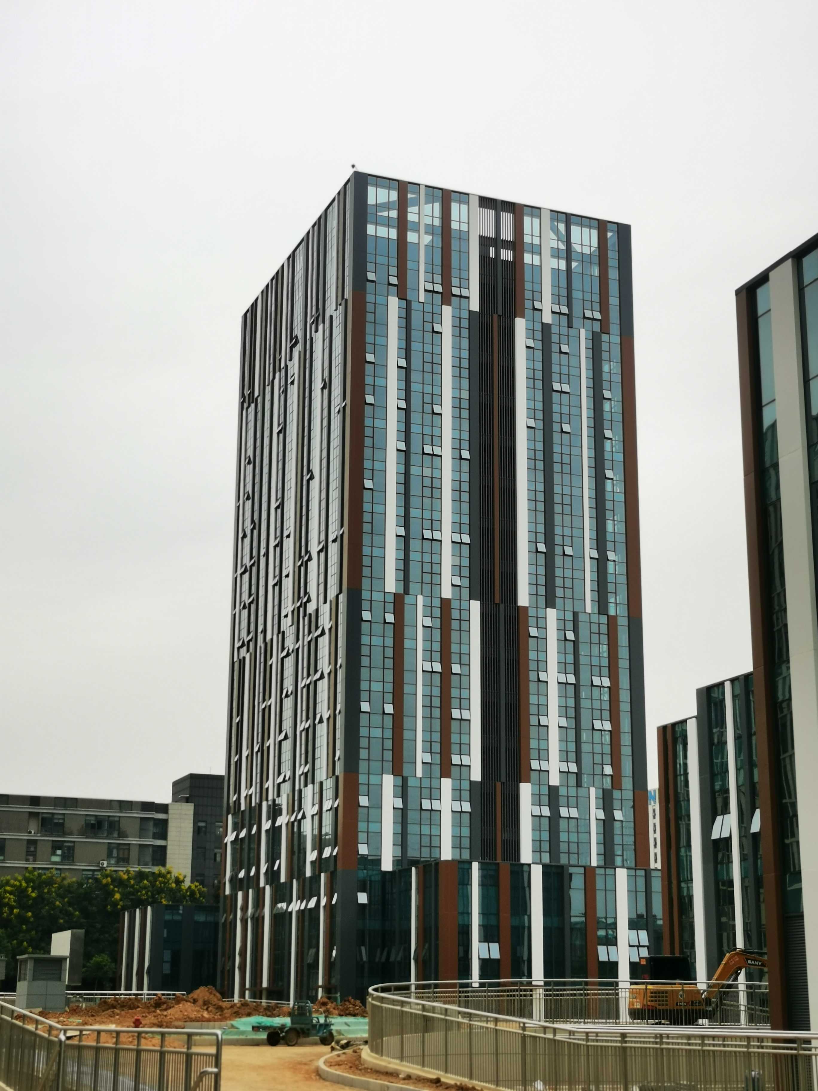 本工程包括1#樓、2#樓和6#樓,建筑功能均為新型廠房。本工程主要幕墻系統形式為豎明橫隱玻璃幕墻、鋁合金格柵、蜂窩鋁板幕墻、玻璃雨蓬和鋁板雨蓬。本工程采用新材料-玉玻璃,為工程添色不少。我院幕墻事業部針對本工程特設計了裝飾邊框一體化豎明橫隱玻璃幕墻系統,減小裝飾條的截面,突出鋁板造型效果。