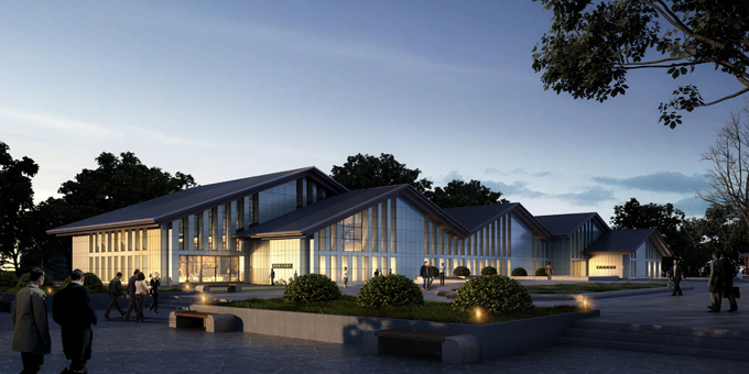 項目用地面積21541.18?㎡,總建筑面積17650.72?㎡,其中計容建筑面積約13058.54?㎡,不計容建筑面積約4592.18 ?㎡。項目主要由展廳、辦事大廳、辦公、會議、多功能廳、餐廳等功能組成。