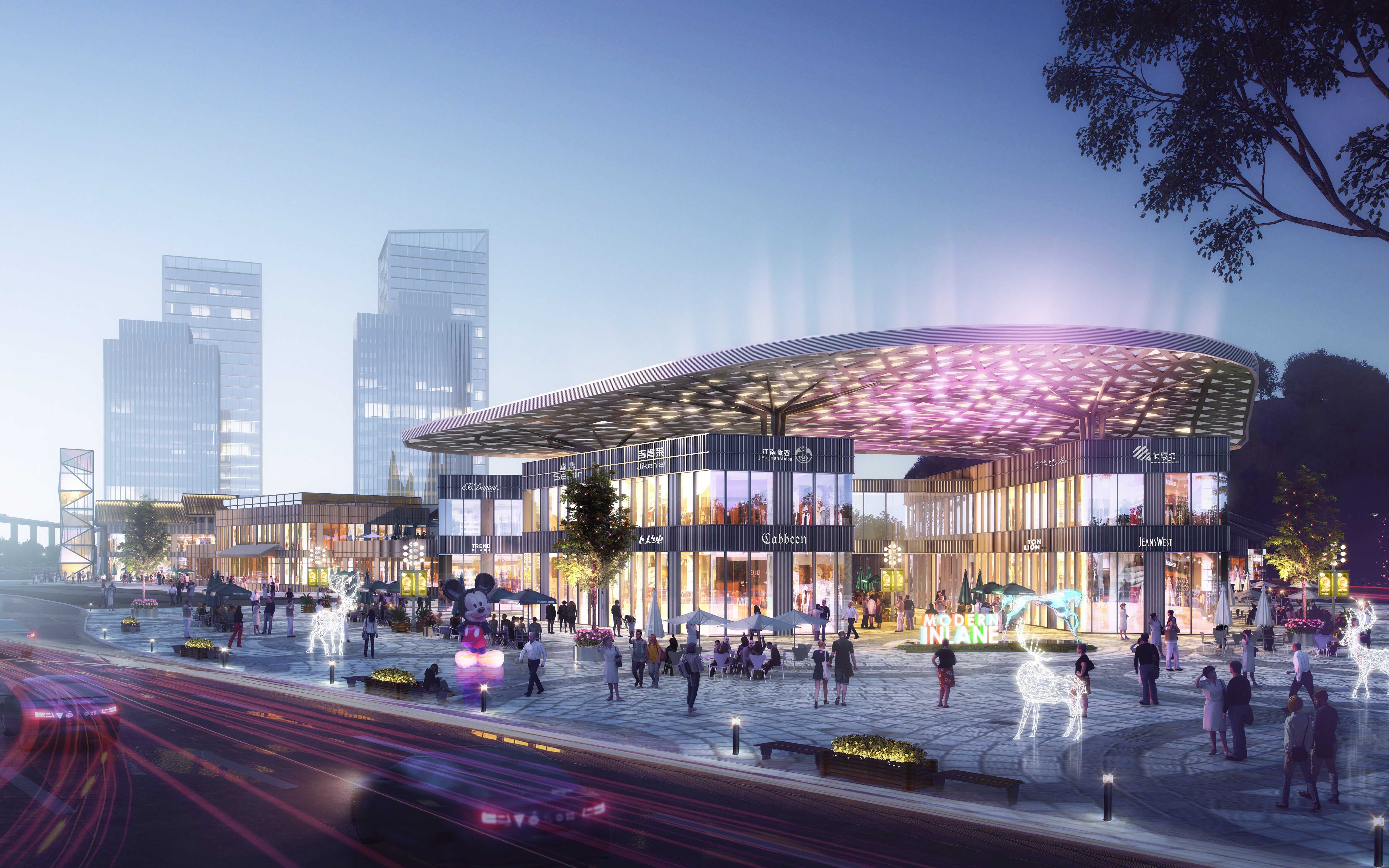 用地面積約為102畝,容積率不大于2.0,地上建筑面積約為13.58萬(wàn)方。工程院方案團(tuán)隊(duì)通過(guò)引入特色文化IP利用咸豐地域文化資源,引入土家族文化+汽車文化兩大IP,整體打造成為融智慧停車示范、汽車銷售、汽車維保、汽車旅游、汽車休閑、農(nóng)產(chǎn)品商貿(mào)及餐飲服務(wù)、酒店、公寓為一體的一站式大型商貿(mào)城。